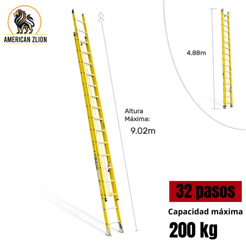 ESCALERA TELESCOPICA DE 32 PASOS / EXTENDIDA 9.02 MTS – FIBRA DE VIDRIO : AMERICAN Z LION