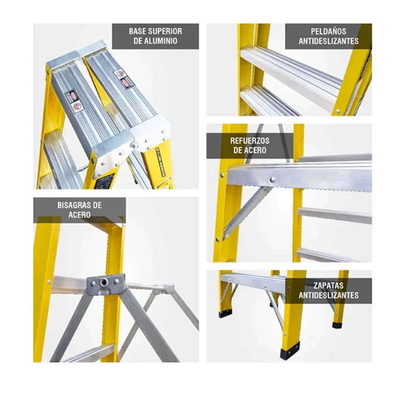 ESCALERA TIJERA DOBLE ACCESO DE 7 PASOS – 2.10 MTS – 200 KG – FIBRA DE VIDRIO : AMERICAN Z LION